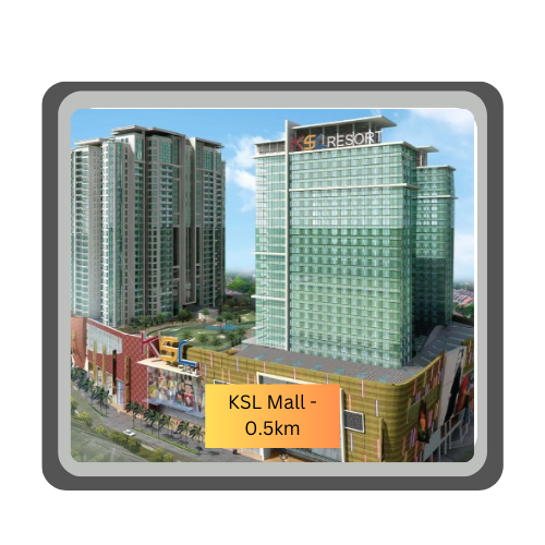 如果你要购物的话,0.5km就到达了holiday plaza & KSL, 就算去City Square & Mid Valley 都不超过3km的路程,大小型的shopping mall都在这个范围。