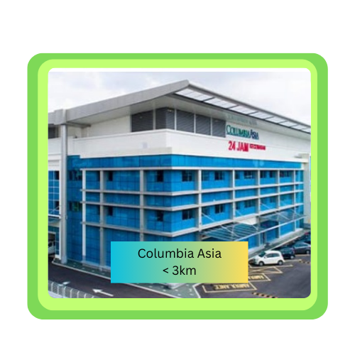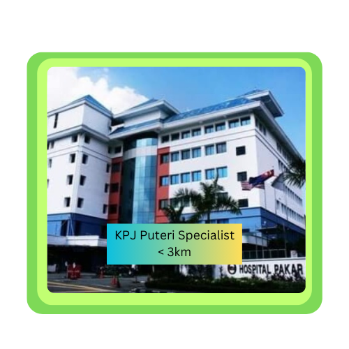 Hospitals are also conveniently located, with Putra Specialist, KPJ Puteri Specialist, and Columbia Asia all within a 3km radius!